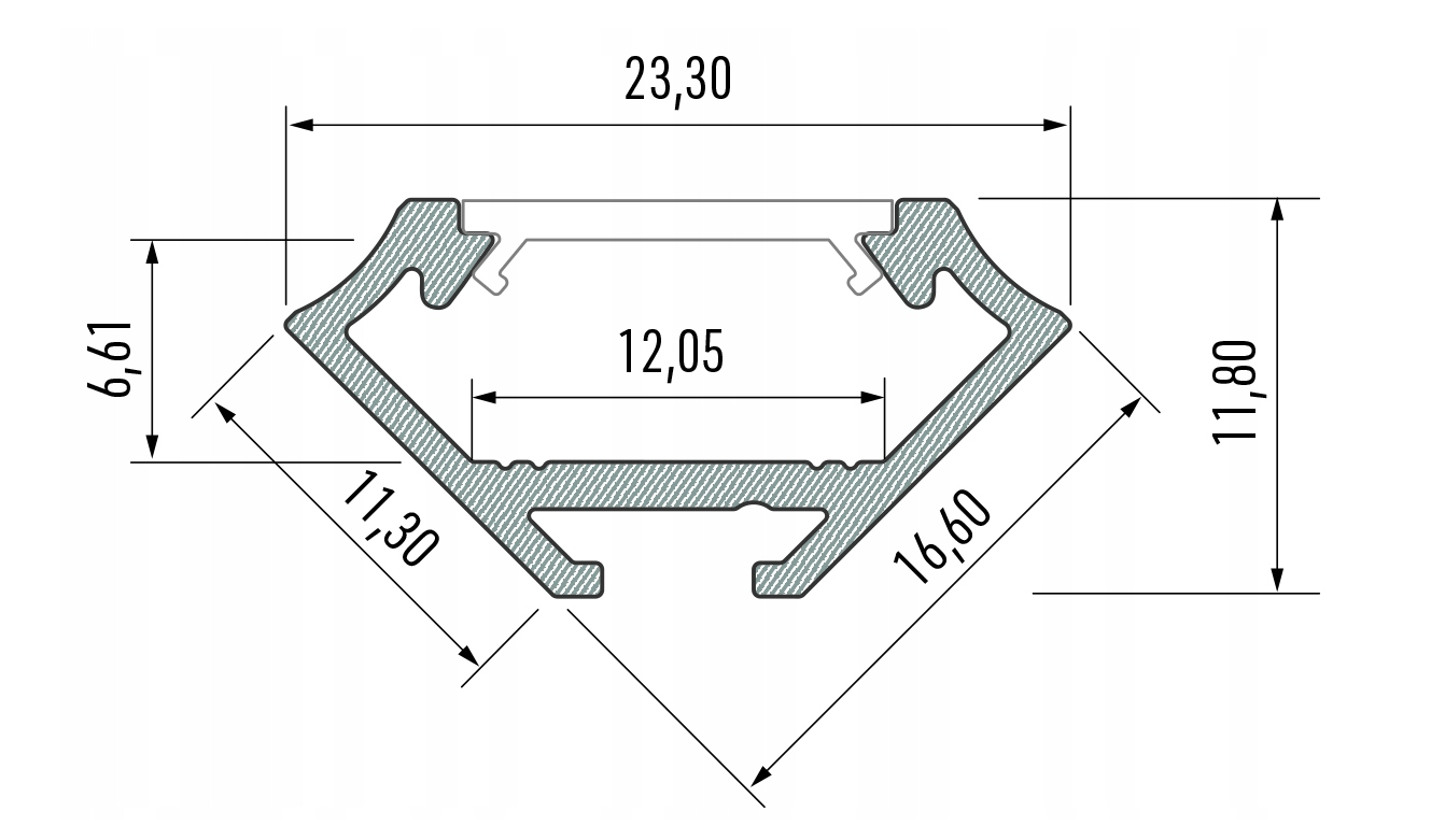 ✨ Hit Cenowy ✨Profil LED LUMINES C – kątowy, surowe aluminium, długość 3 metry Profesjonalny profil aluminiowy typu narożnego o kącie nachylenia 45°, przeznaczony do powierzchniowego montażu w miejscach wymagających kierunkowego oświetlenia. Surowe aluminium umożliwia indywidualną obróbkę, idealny do zabudowy w narożnikach meblowych i wnętrzarskich. ✔️ Główne cechy produktu: