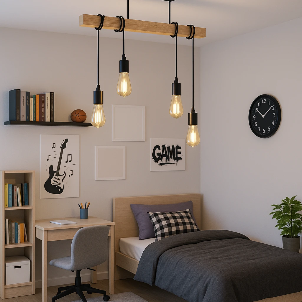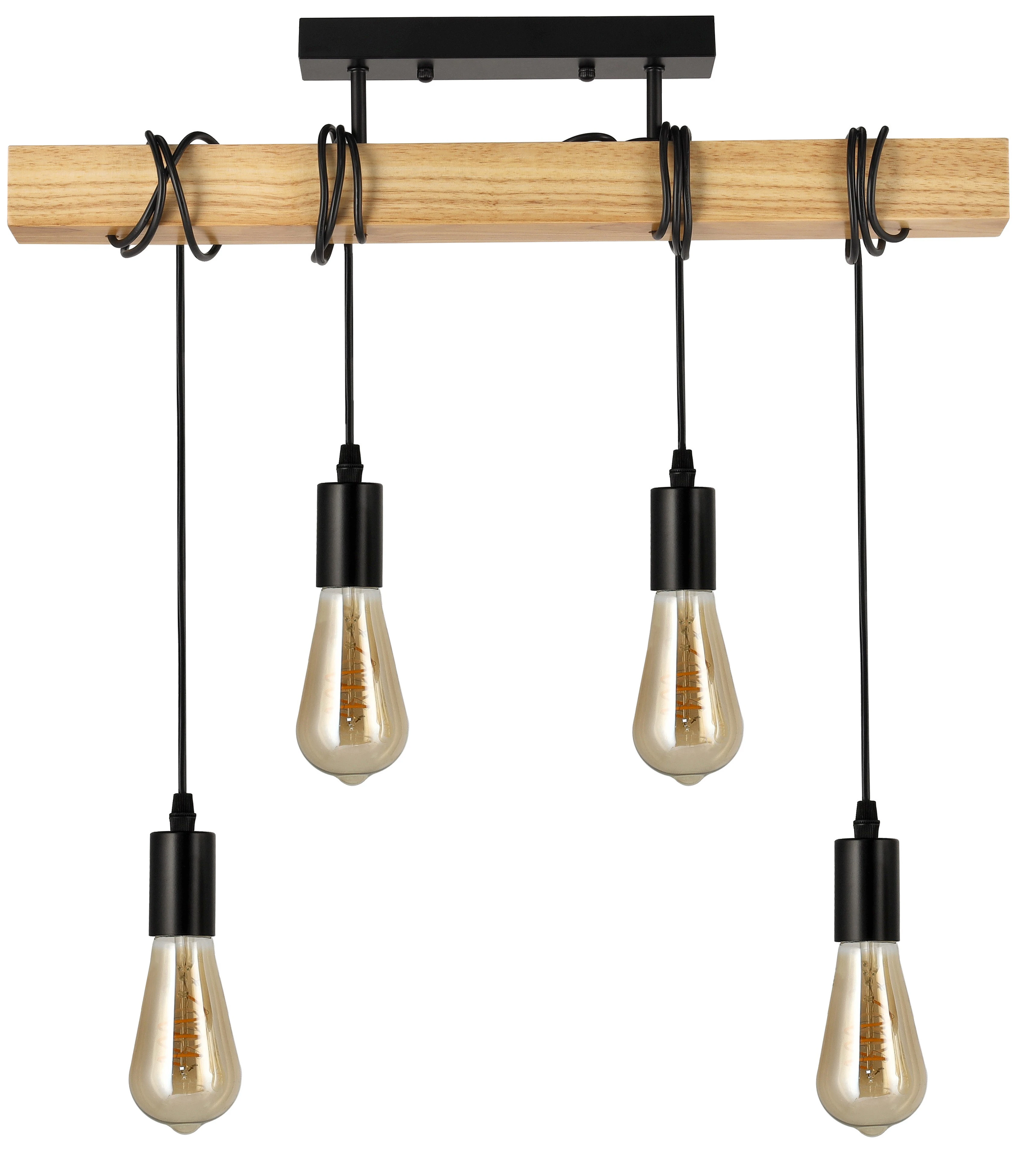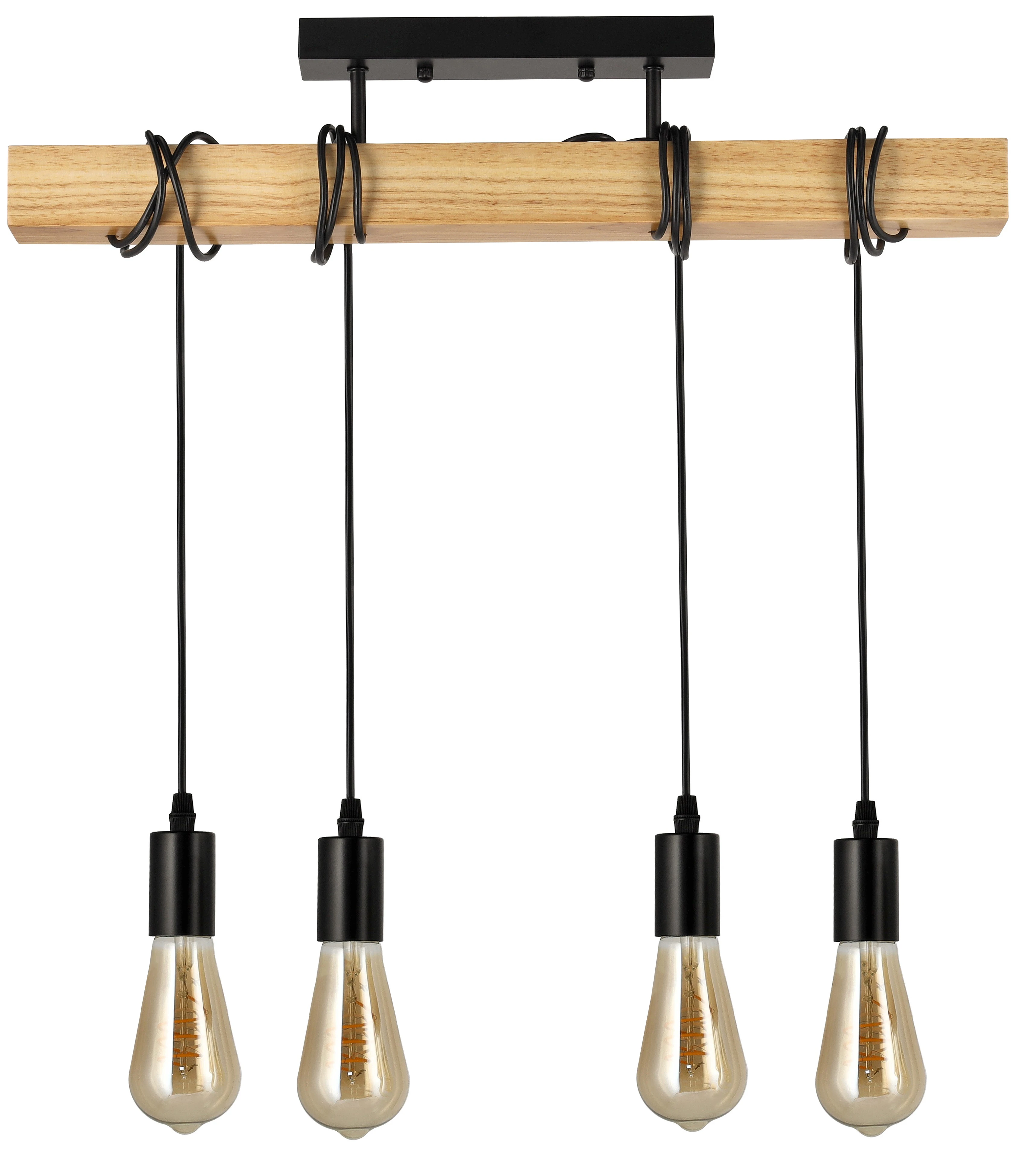 ✨ Hit Cenowy ✨Stylowa lampa sufitowa wisząca LED łącząca nowoczesny design loftowy z naturalnym drewnem i stalą. Doskonale prezentuje się w salonie, jadalni czy biurze, wprowadzając elegancję i przytulność w każdym wnętrzu. ✔️ Główne cechy produktu: ✅ Nowoczesny styl loftowy – połączenie czarnego metalu i naturalnego drewna tworzy efektowny kontrast, idealny do wnętrz industrialnych i nowoczesnych. ✅ 4xE27 – uniwersalność źródeł światła – możliwość zastosowania dowolnych żarówek o standardowym gwincie E27 (max 60W wolframowe / 20W LED). ✅ Regulacja wysokości – linki z możliwością regulacji umożliwiają dopasowanie lampy do pomieszczenia. ✅ Solidne wykonanie – stalowa konstrukcja i lakierowane drewno zapewniają trwałość oraz odporność na uszkodzenia. ✅ Eleganckie wykończenie – czarne mocowanie i drewniana belka nadają lampie nowoczesny, ale ciepły charakter. ✅ Łatwy montaż – wbudowana kostka montażowa ułatwia szybkie podłączenie do instalacji. |