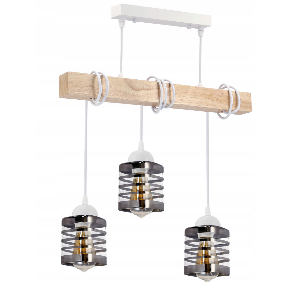 Lampa sufitowa wisząca LED drewniana belka 3xE27 loft paski szklane - biała