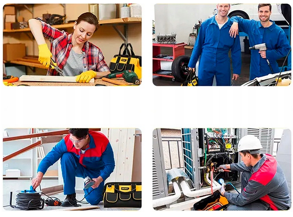 Torba sprawdzi się w wielu zastosowaniach, m.in. dla stolarzy, mechaników, dekoratorów i hydraulików.