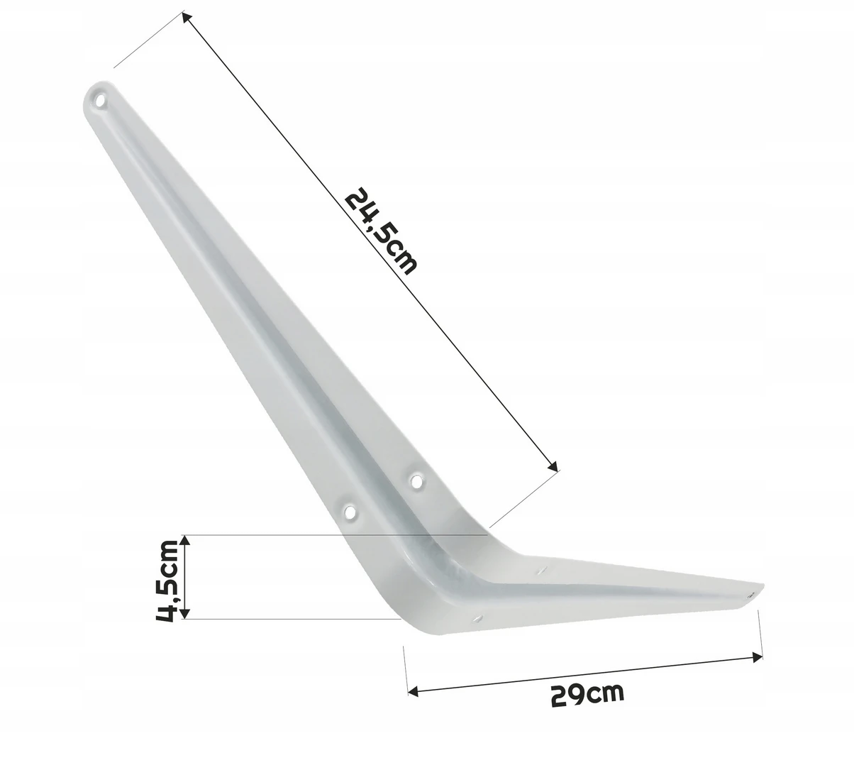Solidny kątownik wspornik pod półkę 250x300 mm w kolorze białym to niezawodne rozwiązanie do montażu półek ściennych, blatów i regałów. Wykonany ze stali A3, łączy wytrzymałość z estetyką – utrzyma ciężar do 25kg, a jednocześnie świetnie komponuje się w nowoczesnych wnętrzach. Główne cechy produktu ✅ Stal A3 – wysoka trwałość – konstrukcja odporna na odkształcenia i obciążenia. ✅ Nośność do 25 kg – idealny do półek na książki, dekoracje czy sprzęt RTV. ✅ Biały kolor – estetyczne wykończenie, pasujące do każdego wnętrza. ✅ Kompaktowe wymiary – wysokość 250 mm i głębokość 300 mm zapewniają stabilność przy zachowaniu niewielkich rozmiarów. ✅ Łatwy montaż – otwory montażowe umożliwiają szybkie i pewne przymocowanie do ściany.